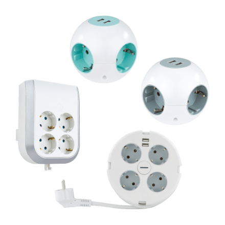 - ‘Power globe’: Disponible en colores gris o verde menta, este modelo también ofrece 4 enchufes estándar y 2 puertos USB.