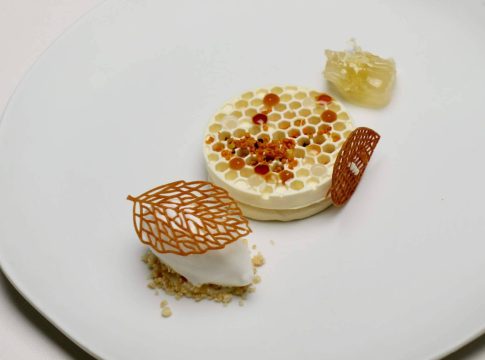 Y no se debe olvidar uno de sus delicados postres, Miel urbana, tomillo y limón, que tiene historia a sus espaldas, en 2003 se prohibieron las colmenas en núcleos urbanos en toda españa, en 2015 Valencia se convirtió en la primera ciudad que creó su proyecto de apicultura urbana, actualmente con colmenas en Jardín Real, Malilla, patraix y la Seu. El plato quiere apoyar esta iniciativa, es una ganache de tomillo y limón, un panal infusión de cera de abeja con nata, en las celdas diferentes mieles de la ciudad, polen fresco, gel de limón y una crema de fondillón, un helado de leche fresca, hojas crujientes de miel urbana y un trocito de panal.