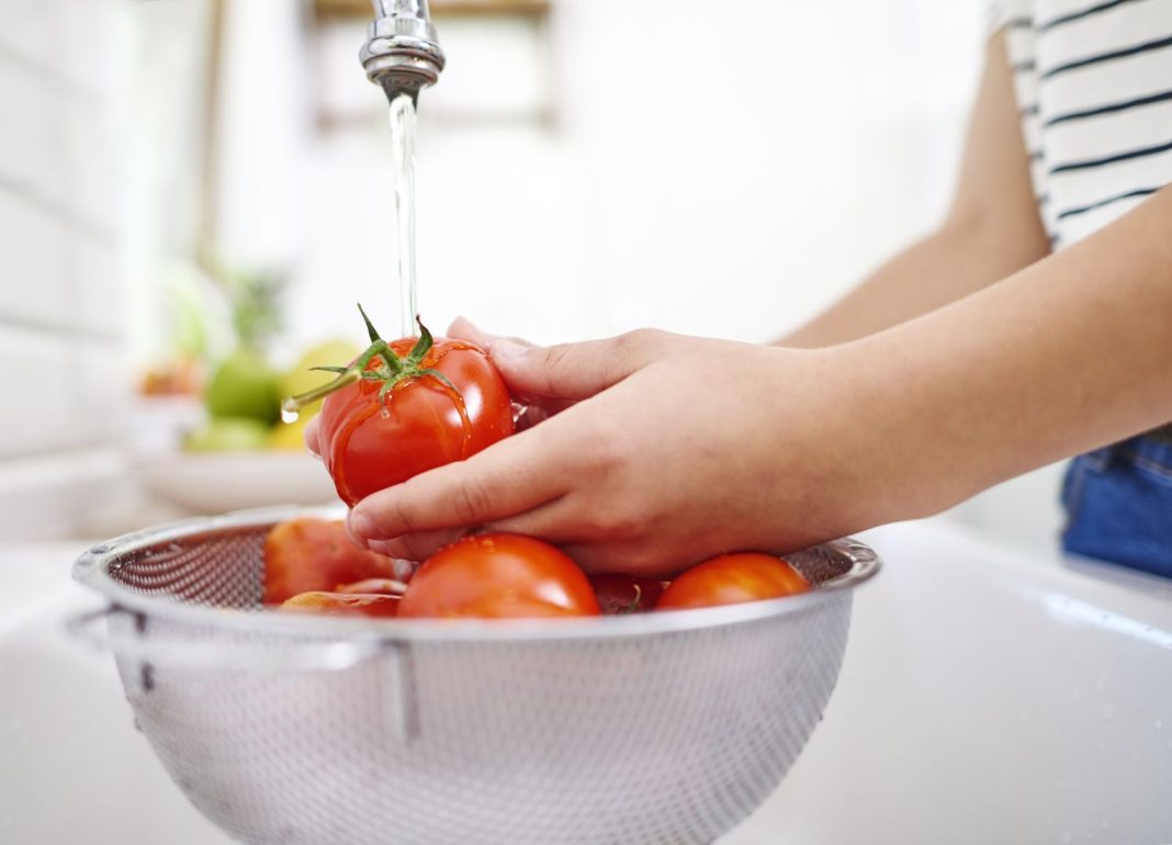 El gazpacho andaluz no incluye cocción que elimine los gérmenes, por lo tanto es fundamental que limpies a fondo las verduras, sin importar que luego añadas el vinagre. Para empezar coge los tomates y córtalos en cuartos antes de meterlos en un recipiente. Después de pelar los pepinos y cortarles los extremos, trocéalos en cubitos y haz lo mismo con la cebolla pelada y el pimiento verde. Finalmente, pela el diente de ajo y retira el centro antes de echarlo al bol con el resto de verduras.