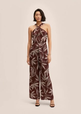 Para las amantes de esta bonita prenda, en las tiendas de Mango está triunfando sobre todos los demás un diseño estampado que no tiene nada que envidiar a los que hemos visto en las grandes pasarelas durante esta primavera. Se trata de un mono largo, de cuello halter, con hombros y espalda al descubierto. Se ajusta de forma cruzada y con un lazo fino a la altura de la cintura. Pero lo que más destaca de él es su precioso estampado de hojas en color blanco, que resaltan sobre el fondo marrón de la prenda. También puedes adquirirlo en tallas desde la XXS hasta la XXL por un precio de 39.99€.