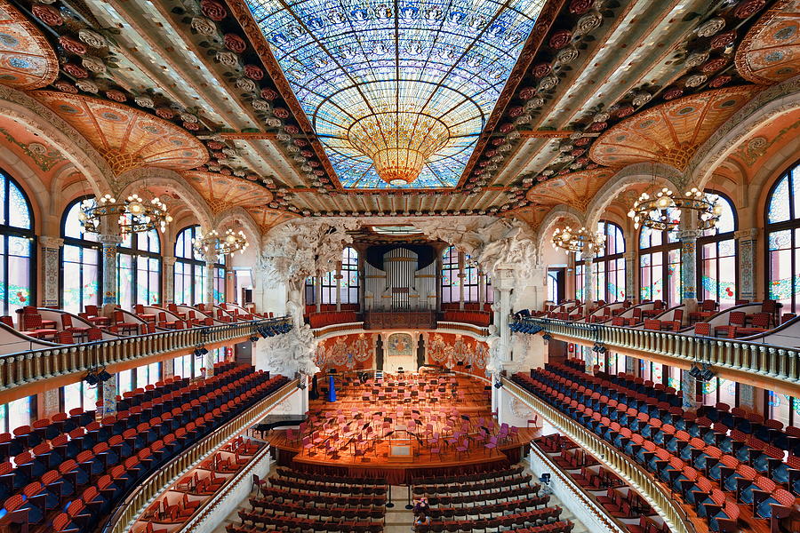 El Palacio de la Música Catalana es un gran ejemplo de arquitectura modernista con detalles únicos que se encuentran tanto dentro como fuera de la construcción. Incluso a primera vista, el palacio deja una impresión única y un ambiente único: desde los colores y acabados de sus techos encantadores a los mosaicos y estatuas esculpidas, hasta los detalles únicos de sus vidrieras, todas las características conmovedoras son un testimonio del sublime proceso de creación artística que caracteriza su belleza.