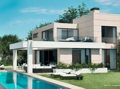 Constan de cinco dormitorios con cuarto de baño en suite, distribuidos entre tres plantas. Los salones son espaciosos con un gran ventanal, creando un hogar lleno de luz, sol y vida. Las cocinas de diseño están equipadas con los materiales de la más alta calidad. El cliente tendrá la posibilidad de elegir entre un sexto dormitorio, un cuarto de aseo para sus mascotas, así como una estancia polivalente que podrá destinar a gimnasio, piscina interior, sauna, jacuzzi, cine y bodega. Lujos como el ascensor y cinco plazas de garaje denotan un nivel alto. Las villas cuentan también, con baño de cortesía, área de servicio y la excelencia aplicada a sistemas de innovación como domótica y aerotermia.