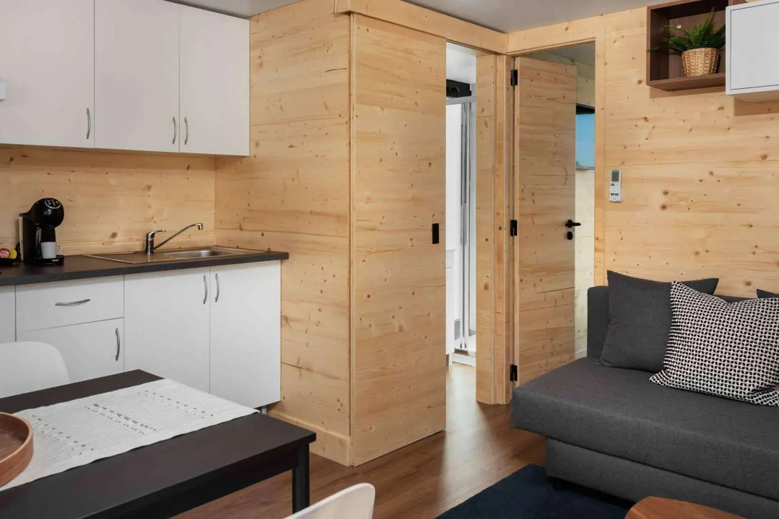 Las casas flotantes de este complejo, también conocido como floatel (hotel flotante) tienen capacidad para alojar de 2 a 6 personas cada una, cuentan con distintas comodidades, así como grandes ventanales que conectan con los hermosos paisajes del exterior.