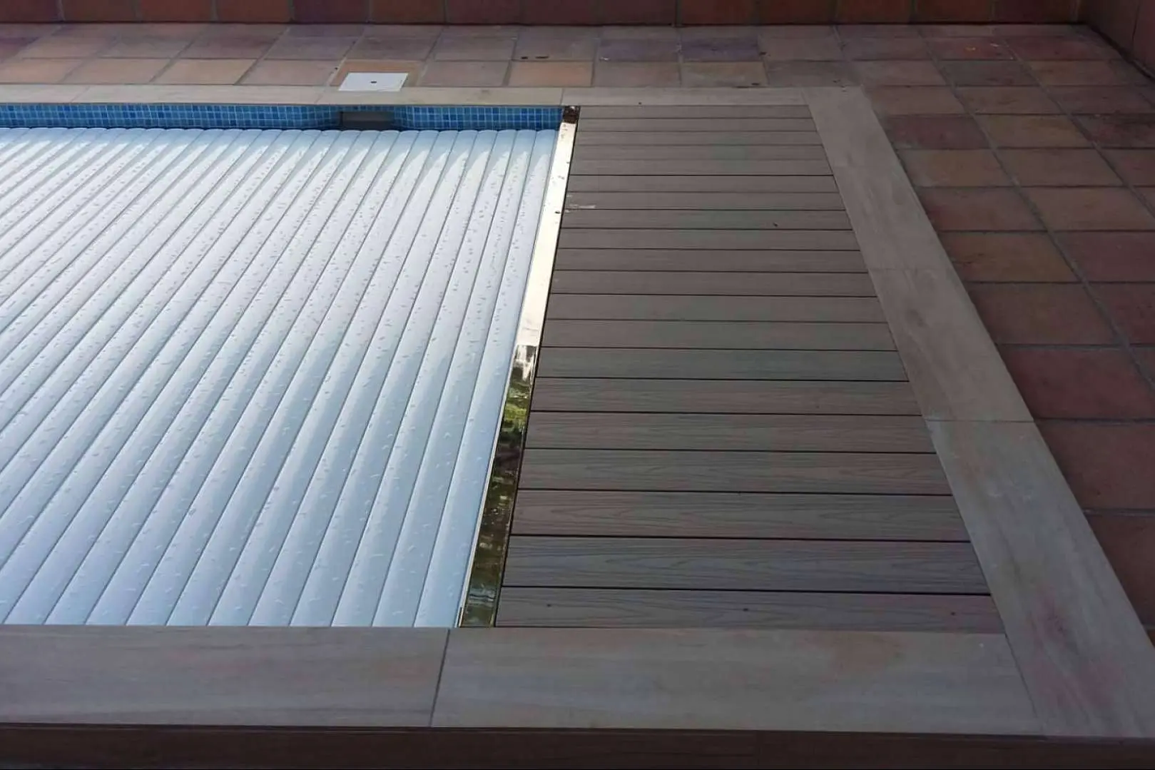 Instalar una cubierta elevada es el sistema ideal para piscinas ya construidas. Proporciona seguridad y aislamiento térmico. Este tipo de instalación se compone de dos soportes, un eje central de acero inoxidable y una caja de control. Se adapta perfectamente al entorno de la piscina y cuenta con final de carrera integrado.