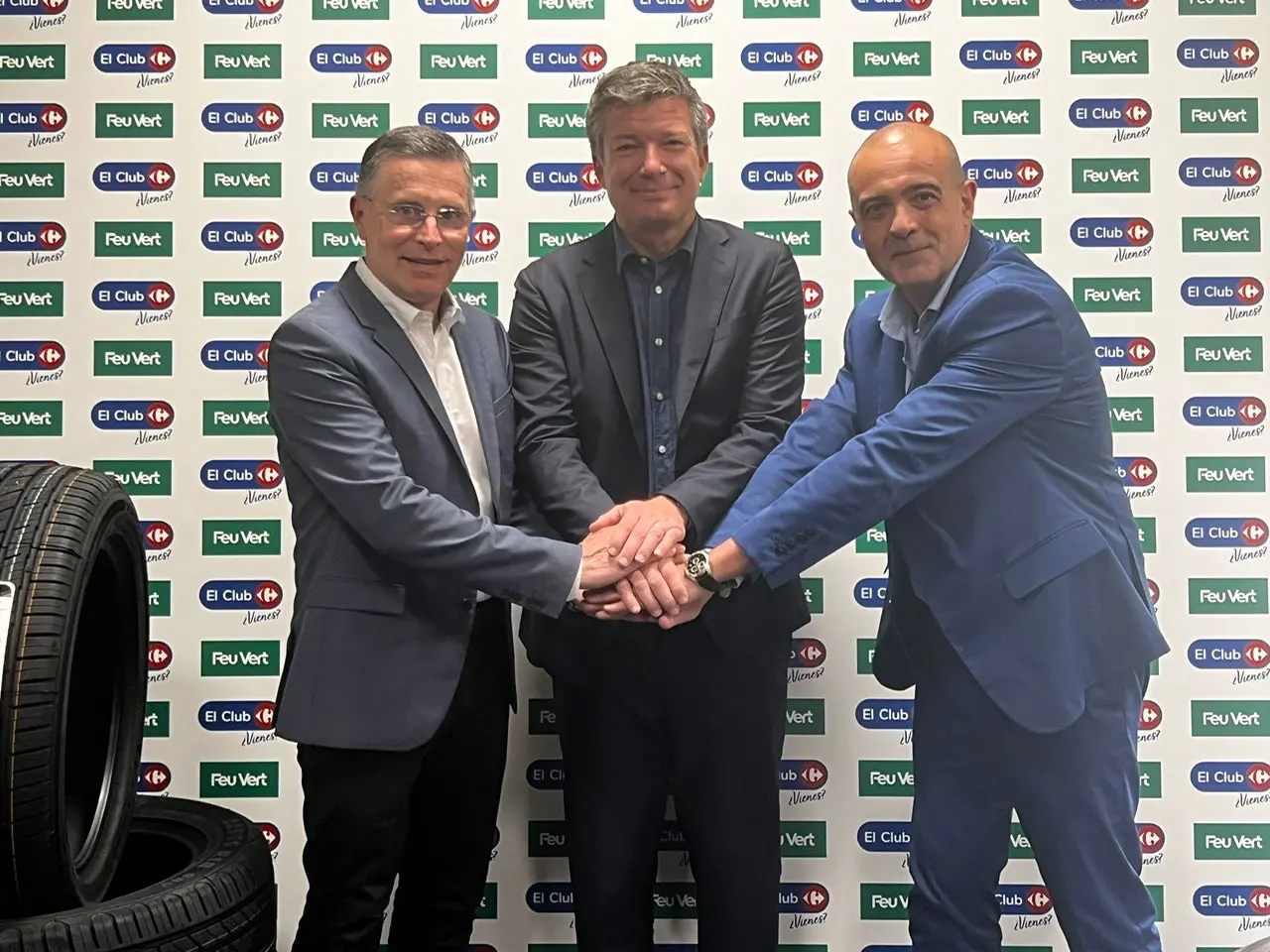 Todos los socios de El Club Carrefour pueden acumular en su ChequeAhorro un 5% del importe de la revisión de sus vehículos y de la mano de obra en el montaje de neumáticos. Alexandre de Palmas, director ejecutivo de Carrefour España, Thierry Sinquin, presidente del Grupo Feu Vert y Manuel Estévez, CEO de Feu Vert en España, han firmado un acuerdo para que los socios de El Club Carrefour puedan disfrutar de una acumulación en su ChequeAhorro del 5% del importe de la revisión de sus vehículos así como de la mano de obra en el montaje de neumáticos. A esta ventaja se añadirán otras ofertas adicionales que se irán desarrollando a lo largo del acuerdo, en línea con el objetivo de Carrefour de contribuir al ahorro de sus clientes.