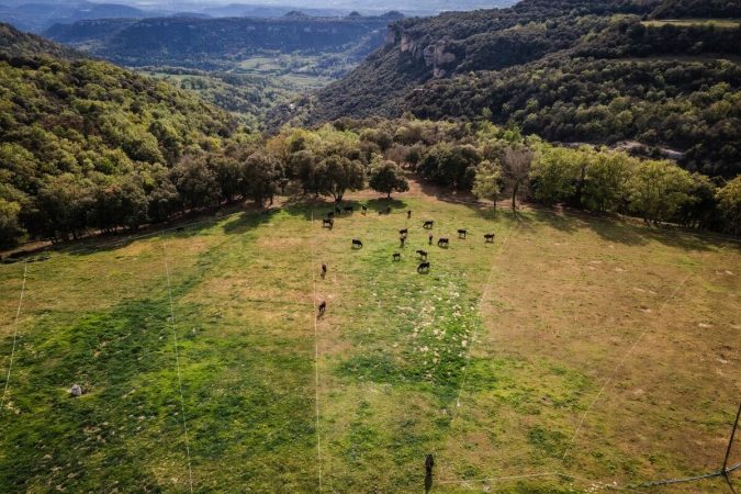 Los agricultores también están luchando para hacer frente a la sequía. Rafel Rodenas es uno de los pocos ganaderos en España que cría carne con certificación Wagyu, y la vende directamente a los restaurantes con estrellas Michelin de la zona. Para que la carne mantenga su certificación, cada una de sus 170 vacas y dos toros necesitan beber entre 70 y 100 litros de agua por día, pastar en campos libres de pesticidas que crecen con la lluvia y comer la menor cantidad de pienso posible.