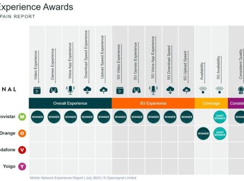 Opensignal ha analizado en su informe la red móvil general y la experiencia 5G de los usuarios de los cuatro operadores de redes móviles en España (Movistar, Orange, Yoigo y Vodafone) entre el 1 de marzo y el 29 de mayo de 2023.