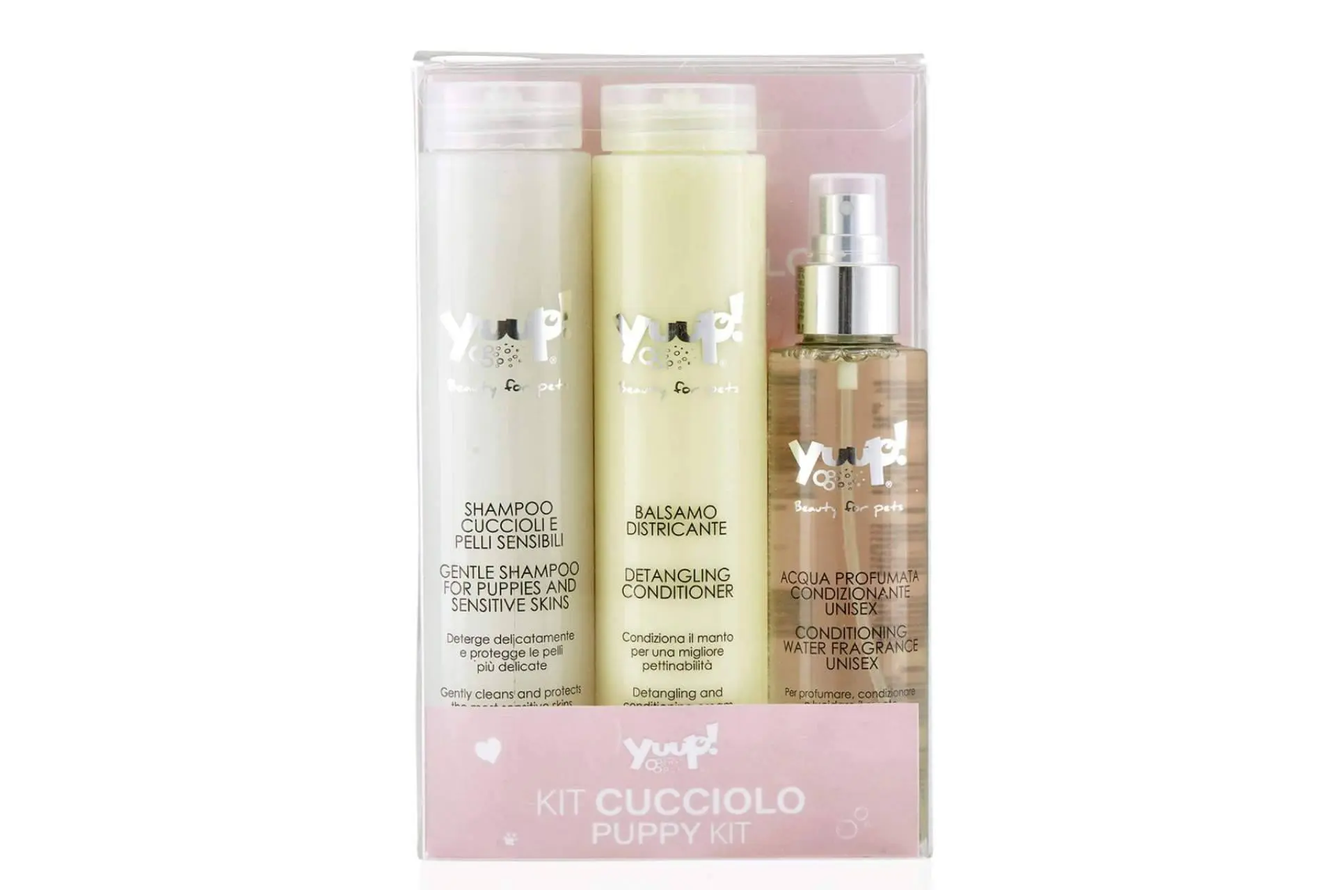 Con relación a esta última, una empresa especializada en la fabricación de productos de cosmética de alta calidad para animales es Yuup! Uno de ellos es el Kit Puppy, que consta de un champú, un acondicionador para perros desenredante y un agua perfumada, específicos para cachorros y pieles delicadas. Otro sería la Colección de champús Sweet, una colección especial de 6 envases de 30 ml champús para perro y gato adecuados para todas las razas e inspirados en los postres más conocidos del mundo. Desde el Tiramisú Italiano hasta los Macarons Franceses, desde el Apple Pie Americano hasta la tarta Sacher Austriaca, desde el Muffin Inglés hasta el Dulce de Leche Sudamericano: todos los champús son a base de ingredientes naturales y contienen Queratina Cuaternizada, Vitaminas C + E + Pantenol, proteínas de la Leche y del Arroz y extracto de Miel. Por último la Colección de champús Tutti Frutti, una colección especial de 6 envases de 30 ml champús para perro y gato adecuados para todas las razas e inspirados en los perfumes y en los colores de la fruta: Fresa, Banana, Manzana Verde, Piña, Cereza y Naranja. Todos ellos se pueden adquirir en 4 Huellas, el distribuidor oficial de dicha firma en España.