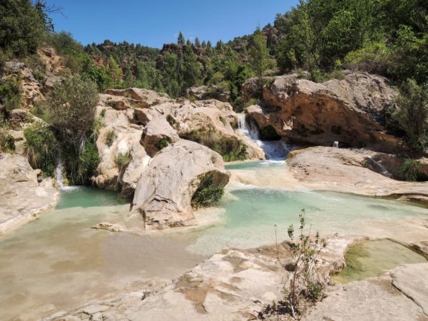 Las Chorreras, creadas por el paso del río Cabriel, ofrecen un espectáculo natural sin igual. Rápidos, cascadas y saltos de agua se entrelazan en un escenario lleno de una belleza asombrosa, mientras que las balsas azul turquesa seducen a cualquiera que se acerque. Es difícil resistirse a la tentación de sumergirse en sus aguas refrescantes y cristalinas, especialmente en verano, cuando las olas de calor amenazan de manera constante.