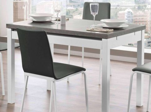 Otras de las opciones es el modelo Gandia cristal, con un extensible lateral y tapa de cristal sobre tablero de DM. La misma cuenta con patas metálicas en color plata o blanco y se extiende por la parte estrecha mediante guías correderas.