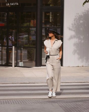 Si bien el estilo ‘top’ no te convence, otra posibilidad es hacer uso de una camisa que comparta el tipo de tela utilizado en la parte de abajo: el lino. Una camisa en tono ocre o blanco puede ser tu mejor aliada a la hora de llevar este estilo de pantalones. Los tonos suaves resultan de hecho muy favorecedores a la hora de vestir en días soleados.