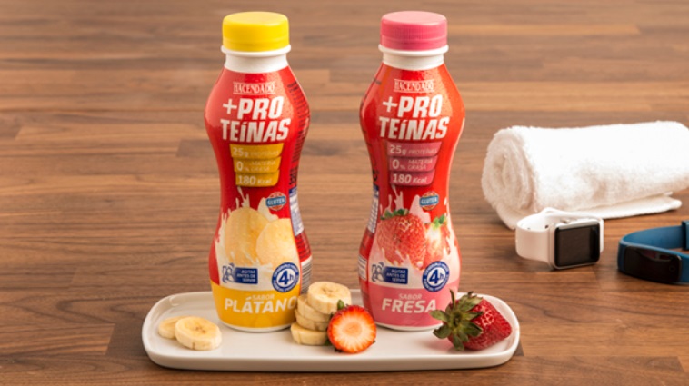 +Proteínas para Beber. Destacan por su textura cremosa y su original sabor. Contienen 180 kcal. y 25 gramos de proteínas por unidad. Una vez abiertos se conservan perfectamente hasta 4 horas fuera del frigorífico, por lo que son la opción perfecta para tomar fuera de casa en cualquier momento del día. Puedes elegir entre dos sabores: plátano y fresa.