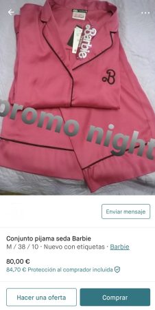 Hay usuarios de Vinted que quieren hacer negocio ellos también y están revendiendo el pijama más buscado de Barbie con Zara con unos precios que se mueven desde 70 a 150 euros. La reventa también se traslada a otras piezas de la colección inspirada en la película, como el perfume, collares o accesorios de pelo que se venden más caros en estas plataformas que en Zara.