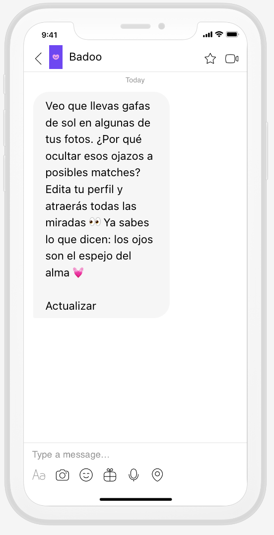 Este verano, Badoo lanza «Mejor sin gafas de sol» para ayudar a su comunidad a mejorar sus perfiles de citas. Los usuarios que tengan varias fotos con gafas de sol recibirán un aviso amistoso para recordarles que pueden estar perdiéndose el «amor a primera vista» y animarles a cambiar sus fotos de perfil para tener más posibilidades de establecer una conexión significativa.