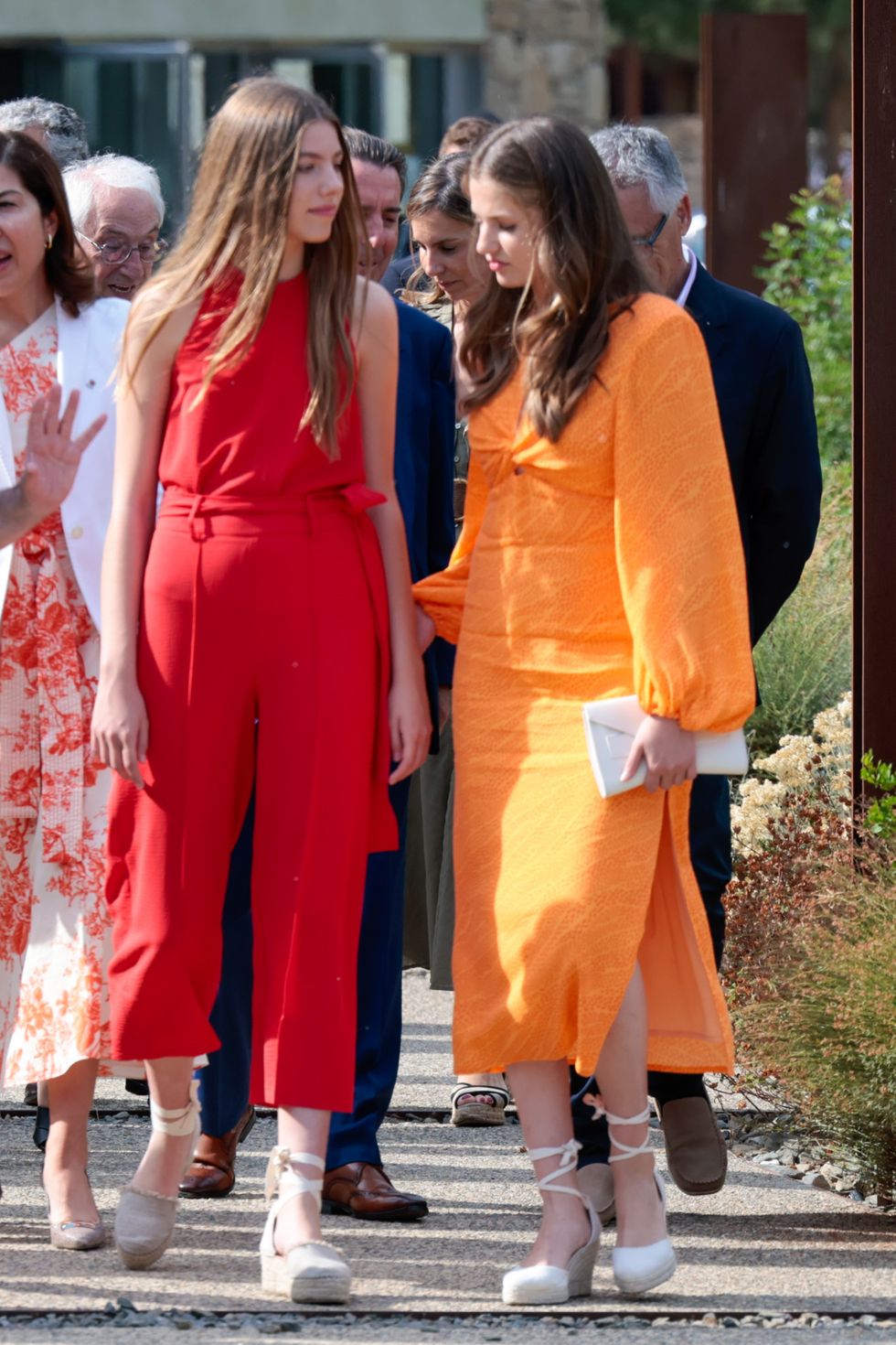 Leonor y Sofía han apostado por un estilo veraniego, de colores muy vivos aunque impropios de su juventud. A pesar de tener 17 y 16 años respectivamente, la princesa de Asturias y la infanta no siempre visten acordes a su edad; de hecho su look recuerda mucho al que luce su madre, la reina Letizia Ortiz. Las malas lenguas insinúan que es ella quien decide la ropa que han de llevar sus hijas, incluso si el resultado suscita críticas, como en el caso de la princesa Leonor.