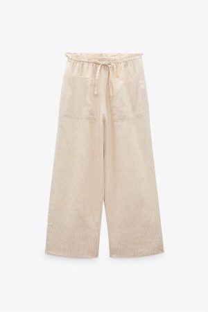 Es necesario recordar que este pantalón de lino que María ha llevado en sus fotos es una creación del gigante de Inditex, Zara. El diseño, confeccionado con mezcla de lino, presenta un tiro medio y una cintura elástica ajustable con cordones, lo que brinda comodidad y versatilidad. Sin embargo, lo que realmente hace que estos pantalones destaquen y que se muestre ese elemento diferencial son los bolsillos de plastrón en la parte delantera, un detalle que agrega un toque único y llamativo al conjunto en su totalidad.