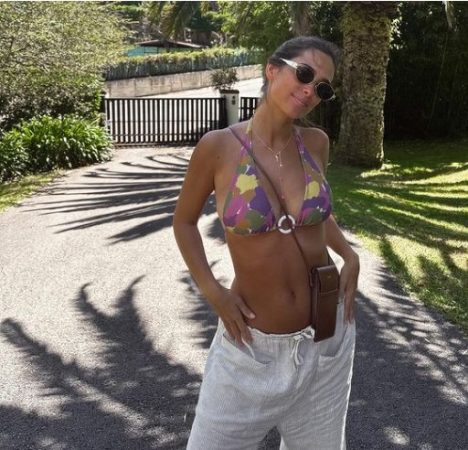 El conjunto playero de María ha sido vestido de un modo relajado y sofisticado, compuesto por un bikini lleno de color y la pieza clave: los pantalones de lino. Se forma así el atuendo perfecto para esta temporada de verano. De hecho, La elección de los pantalones de lino como elemento principal demuestra su capacidad para incorporar tendencias sin sacrificar su tan distintivo estilo.