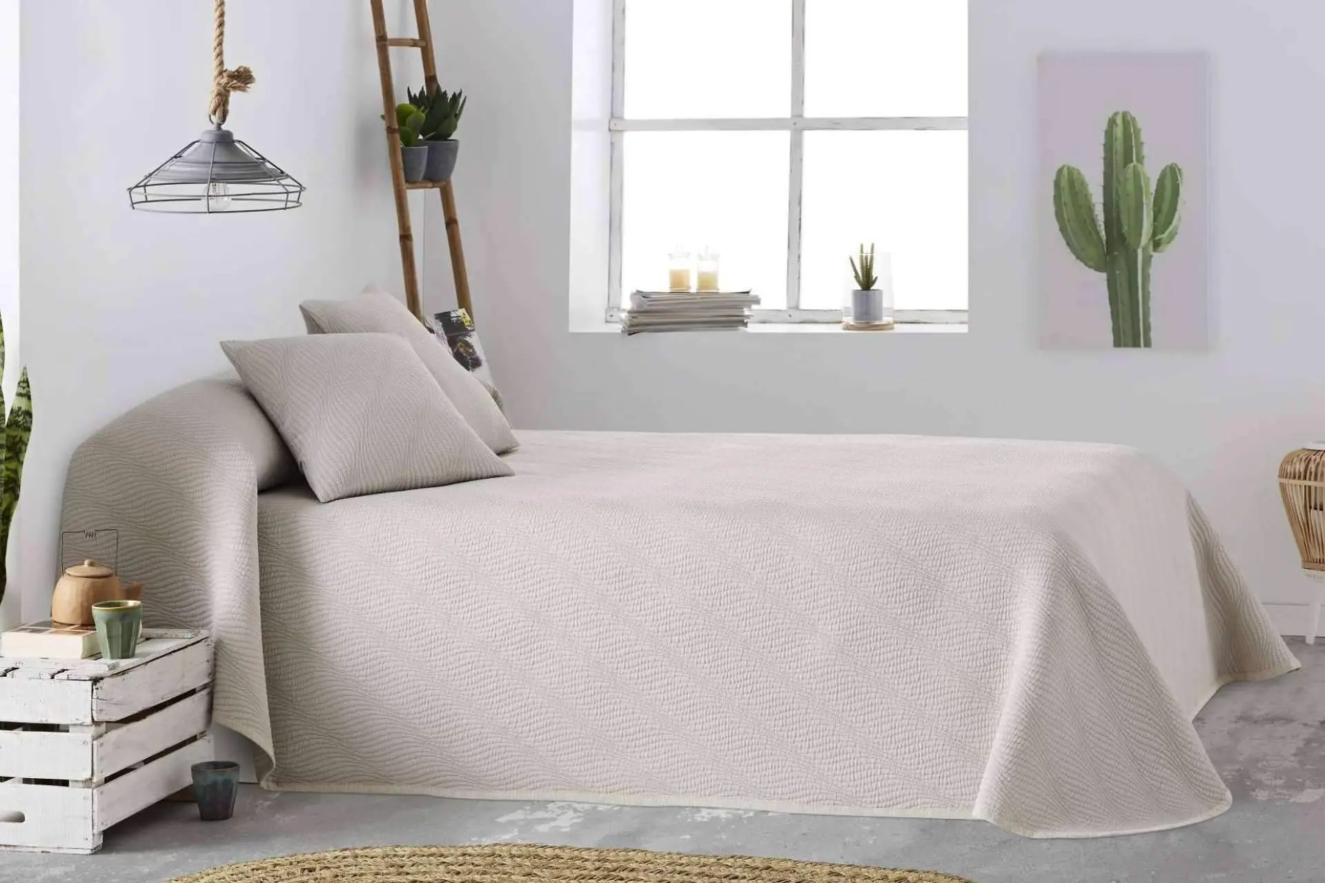Dentro de la propuesta predominan cubrecamas en colores claros, como el modelo de colcha capa Pique 1357 de Encama, confeccionada con algodón, polipropileno y poliéster, que le aporta ligereza y frescura a la prenda. Tiene un diseño geométrico en relieve que combina muy bien con cualquier estilo decorativo. Mientras que, los usuarios que prefieren los cubrecamas estampados, también encuentran opciones en la tienda porque la oferta incluye modelos con dibujos florales y vegetales, motivos geométricos y los degradados como el tie-dye, que están de moda.
