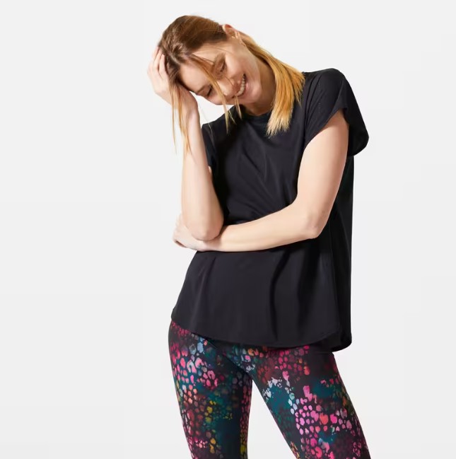 5Camiseta Cardio Training Mujer Negro Corte Láser Holgada de Decathlon