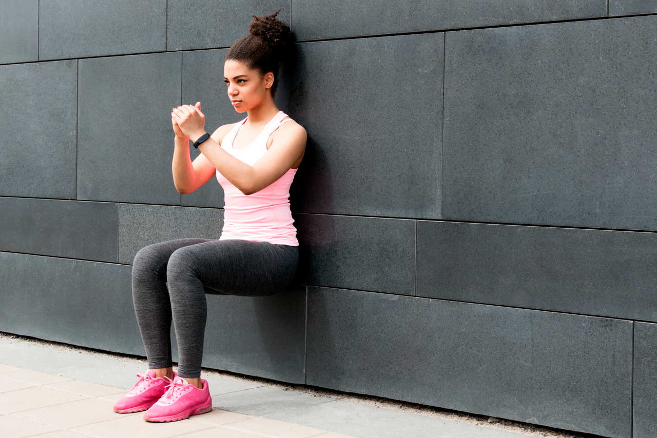 Para tonificar piernas y glúteos con ejercicios isométricos no hay nada como la sentadilla en la pared. Trabaja músculos como cuádriceps, isquiotibiales y glúteos, mientras fortalece el ‘core’ y la postura. Colócate con la espalda contra una pared, deslizándote hacia abajo en posición de sentadilla hasta que tus muslos estén paralelos al suelo. Mantén esta posición de 45 segundos a un minuto, luego descansa y repite de 4 a 5 veces. ¡Muy bien! Este ejercicio resulta excelente para potenciar la resistencia muscular del tronco inferior de forma sencilla.