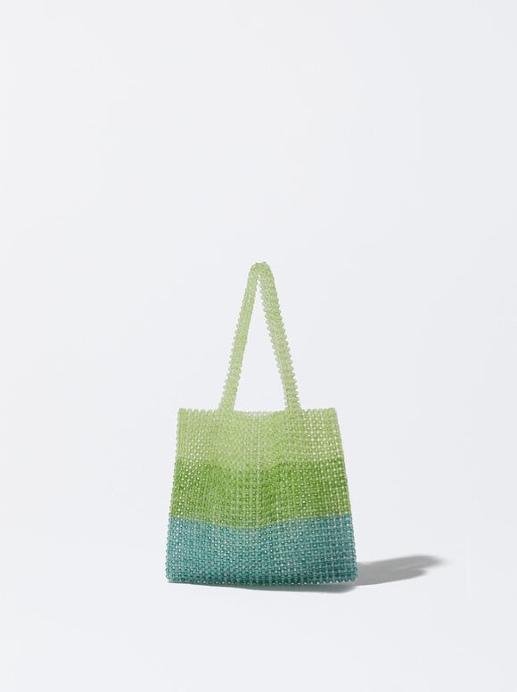 En Parfois también puedes llevarte este bonito bolso tote con detalles de abalorios multicolores y un cómodo doble asa de hombro. Fabricado completamente en acrílico, resistente y fácil de limpiar. Tiene un tamaño de 5.5×22.5x.5 cm (Largo x Ancho x Alto) y una longitud de asa de 55 cm, un tamaño perfecto y cómodo para el día a día. Disponible en tres opciones de color: clásico negro, elegante blanco y divertidas rayas en tonos verdosos. Este bolso añadirá un toque moderno y estiloso a cualquier conjunto. Está rebajado a solo 9,99 euros.