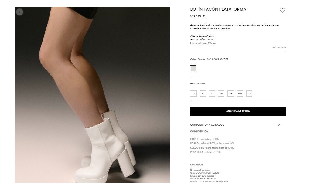 La atención a los detalles es una característica distintiva de la marca, y el botín tacón plataforma no es la excepción. El detalle de la cremallera en el interior no solo aporta un elemento funcional al diseño, sino que también añade un toque de sofisticación. Además, esta característica facilita el proceso de ponerse y quitarse los botines, lo que demuestra la practicidad que Lefties siempre tiene en mente al diseñar sus productos.