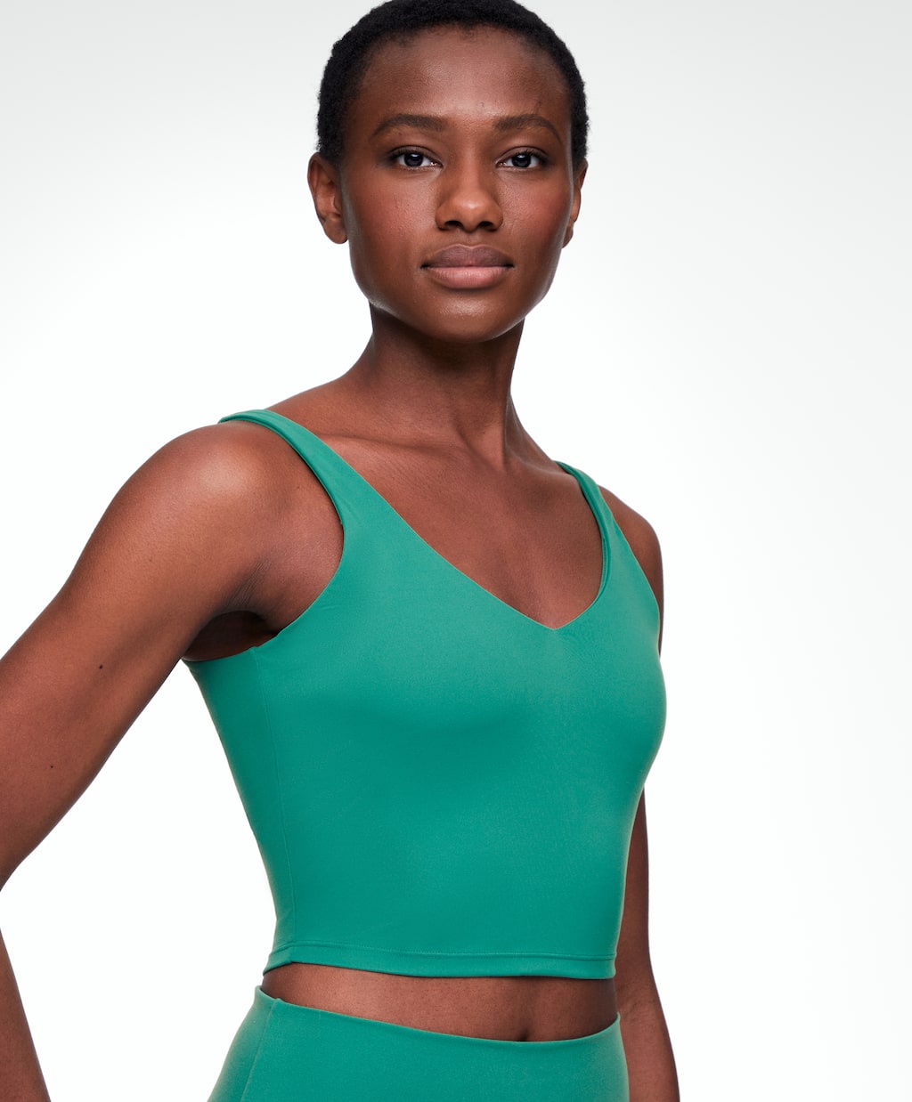El top de tirantes tiene un precio de 17,99€ y está disponible en tallas de la XS a la XL. Corto y con escote triangular, cuenta además con un sujetador integrado y una abertura para añadir copas. Su tejido es altamente resistente, con protección solar UPF+40, permeable al vapor de agua y de secado rápido. Puedes elegir entre los colores esmeralda, blanco y negro (REF.: 2963/904).