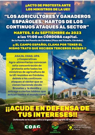 El cambio climático de la mano de la sequía, la guerra de la Ucrania y la crisis inflacionaria han terminado por perjudicar de manera completa al sector agrario. Los agricultores y los ganaderos de toda España concentrarán el martes 5 de septiembre ante los ministros de la Unión Europea que se reunirán ese mismo día en Córdoba. Será un acto de protesta contra los continuos ataques y la falta de ayudas que recibe el sector y para pedir el impulso del uso de los recursos no convencionales de agua como la reutilización y la desalación.