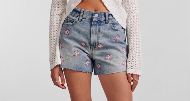 1Pantalón corto vaquero de mujer con bordados de cintura alta Pieces en El Corte Inglés