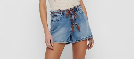 2Pantalón corto denim de mujer con cinturón trenzado Only en El Corte Inglés