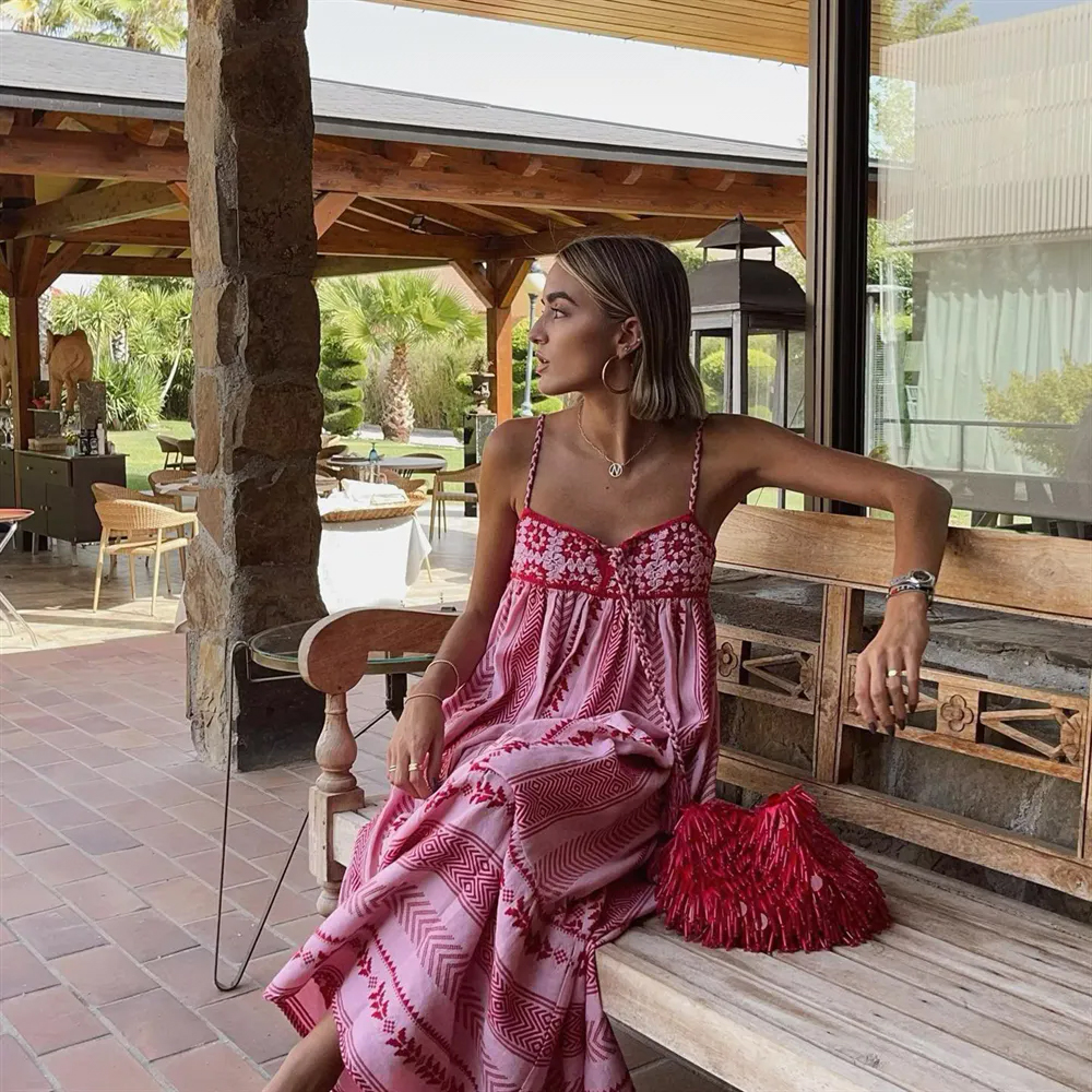 Zara acierta de pleno con su propuesta en la moda midi, gracias a un vestido que lo tiene todo para triunfar. Su estampado rojo contrasta con el rosa del tejido, resaltando su diseño fluido y la falda, que tiene un vuelo estupendo. Su escote recto y los finos tirantes son ideales para que luzcas tipazo, sobre todo con ese escote de crochet tan atrevido. Las influencers han arrasado con las existencias, pero por suerte tienes la versión de AliExpress a un precio de 22,94 euros.
