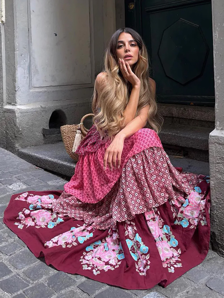 ¿Hay algo mejor que tener un midi en tu armario? ¡Pues claro, disponer de varios modelos! En este caso Zara apuesta por el estampado patchwork en rosa y burdeos, decorando una prenda de algodón con escote de pico. No pierdas de vista de los tirantes trenzados cruzados en la espalda descubierta, un detalle que nos ha enamorado; casi tanto como la falda con volantes. Si lo quieres, AliExpress tiene su propio modelo y cuesta apenas 15,72 euros.