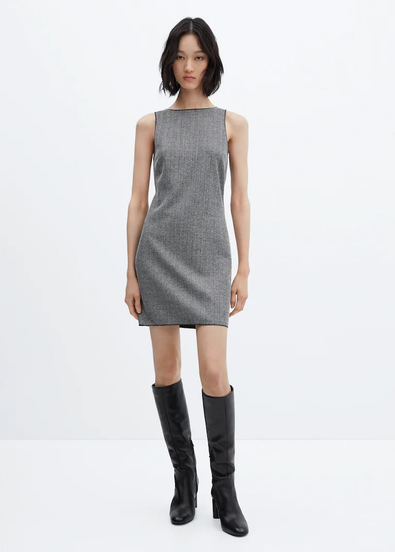 Otro vestido básico que es perfecto para la oficina es este modelo sencillo, minimalista y superelegante de Mango. Es de punto fino, hecho en poliéster y algodón. Se trata de un diseño corto y entallado, con tirantes anchos, muy favorecedor y versátil para combinar con diferentes accesorios y conseguir looks diferentes. No lleva cierre, por lo que es muy cómodo. Está disponible en color gris y en caqui, por un precio de 22,99 euros.