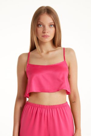Seguimos con otra camiseta corta de tirantes finos confeccionada en raso y disponible tanto en rosa como en negro, nos parece el complemento ideal para el pantalón anterior. Sus tallas van de la S a la L y su precio es de 7,99€ (REF.: 1GT1639).