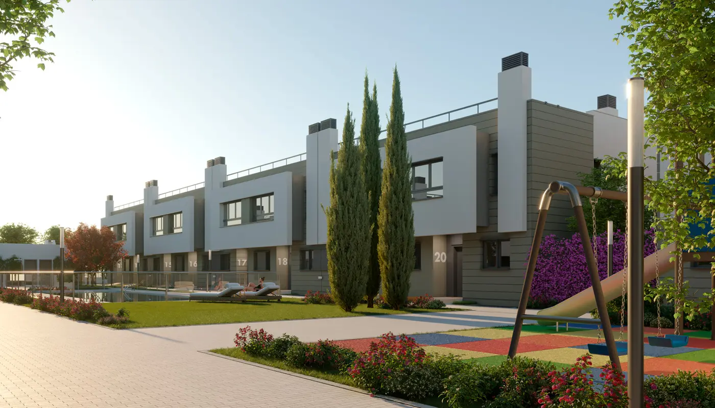 La tipología de esta nueva promoción son chalets adosados de tres dormitorios con terrazas, jardín privado y sótano en Torrejón de Ardoz, una de las localidades más atractivas para vivir en Madrid, no solo por cercanía y buena comunicación con la capital, sino también por el exterior que rodea a las casas donde predomina la riqueza natural. Torrejón de Ardoz se encuentra junto a la Vega del Henares, un hábitat fluvial de gran valor natural, que reúne hasta tres arroyos en su recorrido por la población y que incluye en su término municipal parte del Parque Regional del Sureste.