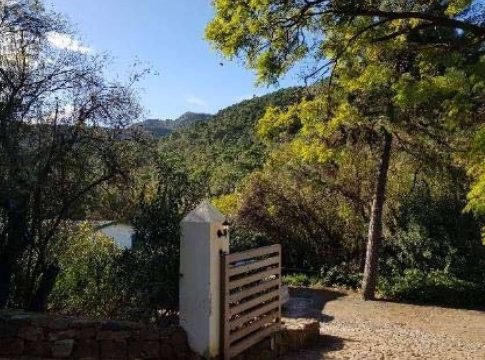 La vivienda unifamiliar, denominada ‘Casa del río’, cuenta con una superficie de cerca de 245 m² y un área de terreno de 2.000. Está ambientada con un estilo tradicional andaluz y cuenta con diversas plantas: en la planta baja está ubicada la piscina, también está el hall de entrada, el salón, la cocina con una decoración rústica, electrodomésticos modernos y suelo de baldosas de cerámica, el trastero, un aseo, un cuarto de plancha y tres terrazas. La planta alta se compone de cuatro dormitorios, dos baños y dos terrazas con zona de estar, cubierta con una pérgola. En la segunda planta, hay un dormitorio de 21 m² aproximadamente. Por otra parte, la otra vivienda que recibe el nombre de ‘Algaida’, está ubicada en el terreno con este mismo nombre y se encuentra junto al río Guadalmina y sin otras edificaciones en las proximidades. La propiedad está situada entre dos valles, a las afueras del norte del casco antiguo de Benahavís y tiene terraza y piscina, dos baños y, al menos, tres habitaciones.