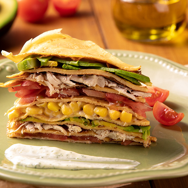 Este pastel salado es una receta sabrosa, de esas que gustan a todo el mundo, y que además resultan muy llamativas para presentar en ocasiones especiales y sorprender a nuestros invitados. Los pasteles de crepes son bastante habituales en versión dulce, pero en esta ocasión queremos hacer una deliciosa propuesta salada para un primer plato especial, un brunch, o una merienda de cumpleaños. Se come frío o del tiempo, así que es un bocado informal perfecto para buffets. La de crepes se hace fácilmente con una batidora eléctrica para conseguir la consistencia perfecta. El relleno, como podrás imaginar, puede ser tan variado como se te ocurra, de hecho puede ser una estupenda receta de aprovechamiento, para dar salida a esas verduras que llevan varios días en la nevera esperando que nos las comamos.