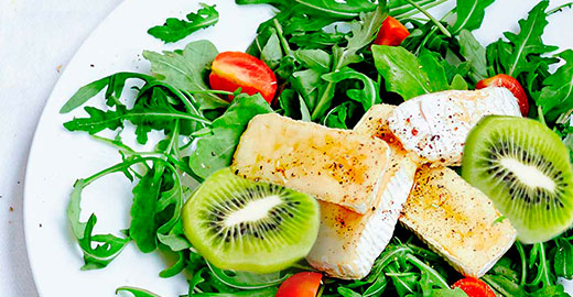 Las ensaladas son una gran opción en cualquier época del año, ya sea como primer plato, como acompañante o como cena ligera. Si te gusta el toque dulce de la fruta en tu ensalada, el kiwi es un gran aliado. Además, si lo mezclamos con brotes como rúcula, canónigos o espinacas, que son ricos en hierro, mejoramos su absorción en sangre. ¡Todo ventajas! Estos son los ingredientes: