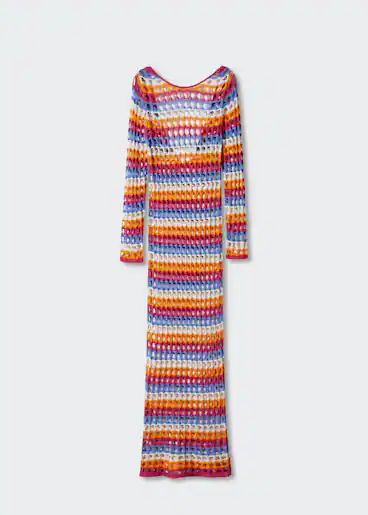 El crochet está más de moda que nunca y Mango trae en este vestido multicolor espectacular. Su diseño es oversize y largo, con un alegre patrón de colores. Cuenta con un cuello barco y mangas largas, mientras que la espalda tiene un sensual diseño abierto. El vestido no tiene cierre y está confeccionado en un 87% de algodón y un 13% de poliéster. Su tejido de punto calado lo convierte en una opción ideal para usar sobre un body, bikini o bañador. Tiene un estilo bohemio perfecto para el verano. Todo esto, por un precio de 49,99 euros.