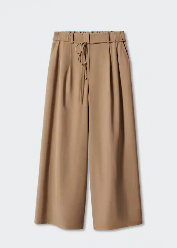 El corte wideleg se ha convertido en el favorito de esta temporada. Es una opción cómoda, favorecedora y fresca para el verano. Mango presenta esta bonita propuesta de pantalones de corte crop, con una cintura elástica cómoda y ajustable. Además, cuenta con un lazo desmontable en la cintura, que le da toque de estilo elegante. Están confeccionados en un tejido fluido y cuentan con trabillas y bolsillos laterales. Se encuentran disponibles en colores crudo y caramelo, y han sido fabricados en un 93% de viscosa y un 7% de poliéster. Puedes adquirirlos por un precio de 29,99 euros.