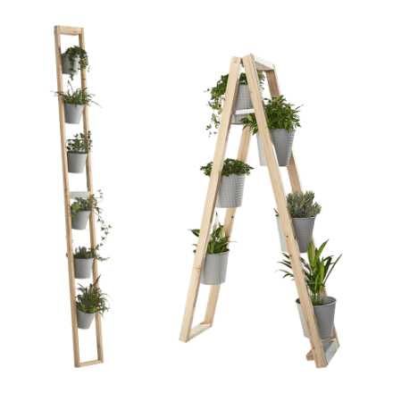 Es una solución versátil y funcional para decorar tu hogar con plantas. Está fabricado en madera y metal, y ofrece dos opciones de uso. Puede ser desplegado en forma de escalera, con una altura aproximada de 117 cm, lo que proporciona un espacio interesante para colocar varias plantas en diferentes niveles. También se puede colgar en la pared, con una altura aproximada de 234 cm, ideal para estancias más pequeñas. La oferta incluye 6 macetas de metal con un diámetro de aproximadamente 15,5 cm. Está disponible en 2 colores diferentes: beige y gris y tiene un precio de 39,99 euros.