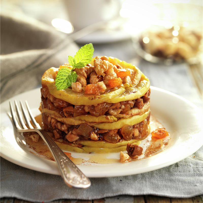 Un milhojas de manzana y nueces te adentra en un mundo de sabores exquisitos y texturas irresistibles con nuestra receta. Este delicioso postre combina la dulzura de las manzanas con el crujiente de las nueces, creando una sinfonía perfecta para el paladar.