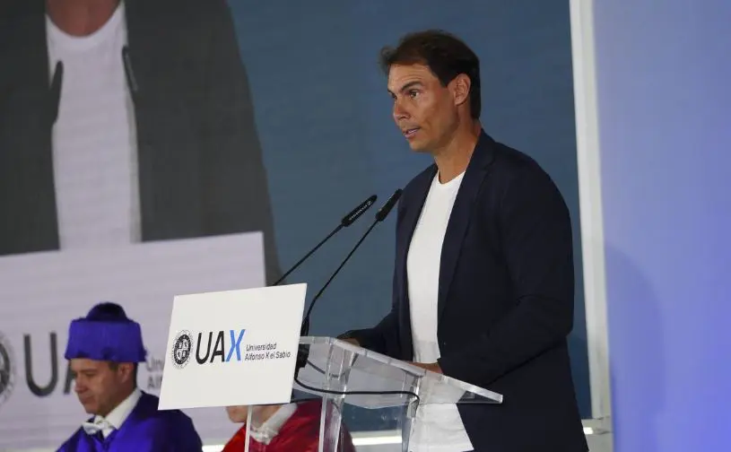 Rafa Nadal, quien intervino en el acto de apertura de curso de la Universidad Alfonso X el Sabio, realizado en el campus de Villanueva de la Cañada en Madrid, invitó a los estudiantes a “ser ambiciosos y trabajar duro para encontrar vuestra mejor versión”, y recordó que “hace un año mi equipo y yo nos unimos a la Universidad Alfonso X el Sabio para crear la escuela de deporte de la Universidad, que tiene como meta mantener la línea de la excelencia educativa que diferencia a UAX y que está presente en todas sus titulaciones”.