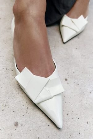 Zara, la marca de moda líder en el mercado rápido, no se ha quedado atrás en esta tendencia. En su colección para esta temporada otoño-invierno, Zara ha lanzado su propia versión de estos tacones inspirados en Prada. Aunque mantienen la esencia de los tacones elegantes con punta afilada, Zara ha añadido su toque característico al diseño. En lugar de flores, han optado por un elegante lazo en la parte delantera, lo que les da un aspecto distintivo pero igualmente sofisticado.