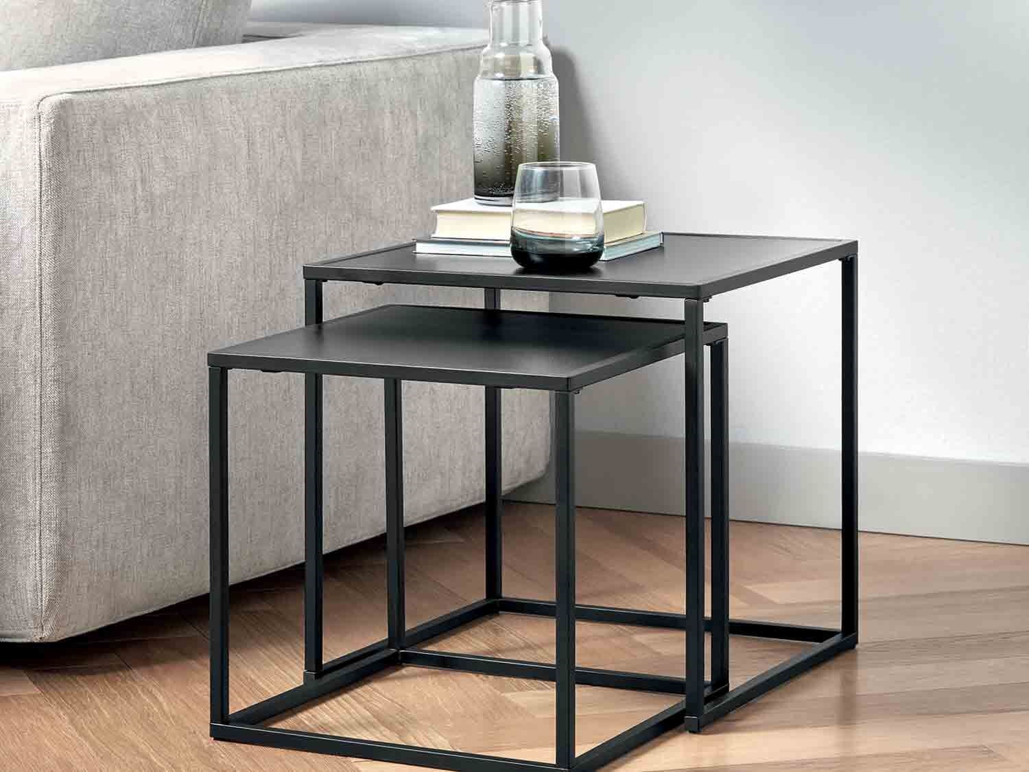 ¿Quieres dar otro aire a tu salón pero el presupuesto no te llega? ¡Ningún problema! En Lidl tienes este magnífico set de mesas auxiliares, con un estiloso diseño industrial y armazón de metal pulverizado, con tablero negro de madera. Una solución ideal para cualquier hogar, sin importar el tamaño de tu piso, y que dotan de un aire elegante a la habitación. Lo mejor de todo es su precio, muy por debajo de lo habitual en este tipo de muebles: cuestan tan sólo 35,99 euros, una ganga que está a punto de agotarse.