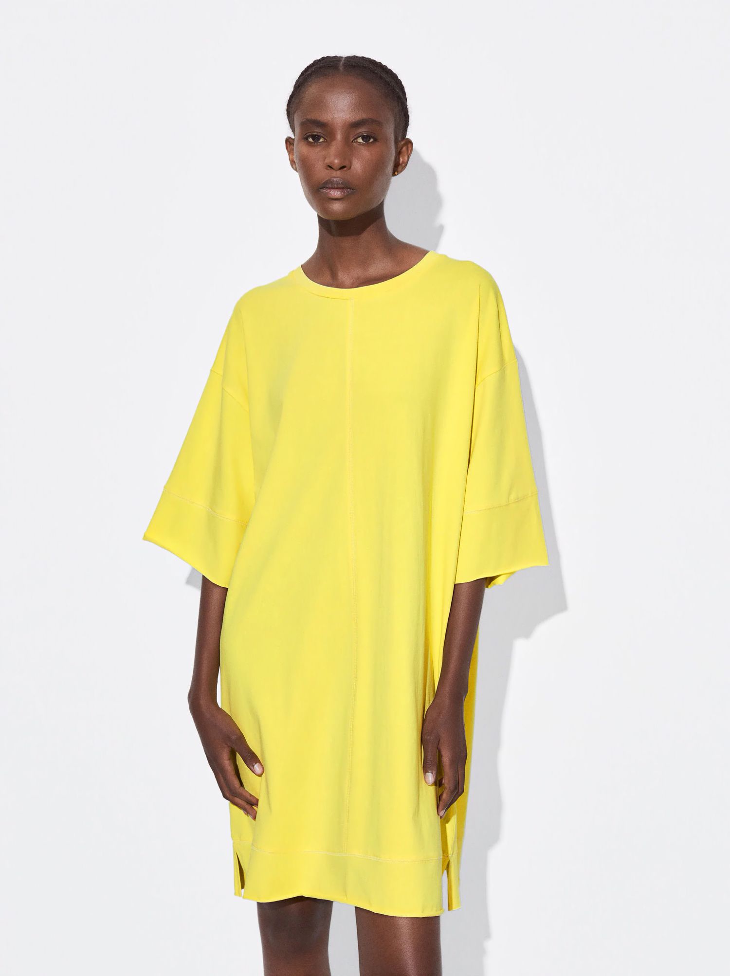En Parfois no dan puntada sin hilo, y también te ofrecen el vestido más indicado para presumir de bolso. Se trata de un modelo corto de algodón, en talla única, con cuello redondo y manga 3/4. ¡Y es de lo más versátil! Presenta un llamativo diseño disponible en amarillo, negro y verde, por lo que resulta tan fresco como juvenil. Ideal para el día o la noche, este vestido se adapta fácilmente a los días calurosos de verano o para llevarlo con chaqueta durante las noches más frescas. Y como era de esperar, su precio es una verdadera ganga, ya que cuesta nada más que 19,99 euros.