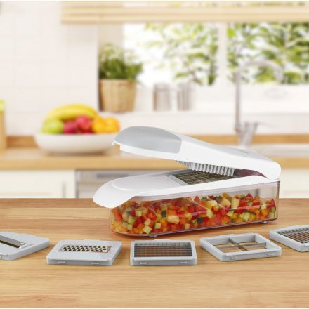 Además, cuenta con un práctico recipiente de almacenamiento con tapa, que te permite cortar directamente sobre él y almacenar los alimentos cómodamente. Sus pies antideslizantes garantizan estabilidad durante su uso. El cortador también viene con un protector de dedos, que te permite mantener tus manos a salvo mientras cortas los alimentos. También se incluye un cepillo de limpieza para facilitar el mantenimiento y la higiene del cortador. Está disponible en varios colores por un precio increíble de tan solo 14,99 euros.