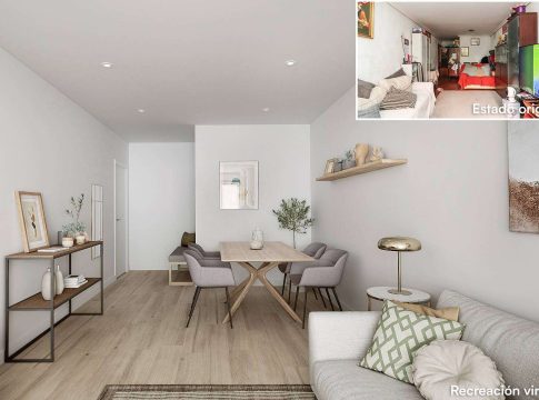 El home staging virtual lo que hace es generar mediante 3D hiperrealista una imagen de una estancia, normalmente el salón, totalmente redecorado como si se hubiese hecho una reforma. De esa manera, el comprador puede ver cómo quedaría esa vivienda recién reformada. Es un servicio ideal para pisos viejos o anticuados, o que se encuentren en un mal estado de conservación.