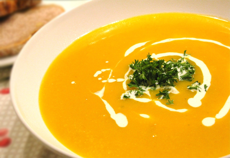 - Sirve la crema de calabaza caliente en tazones individuales.