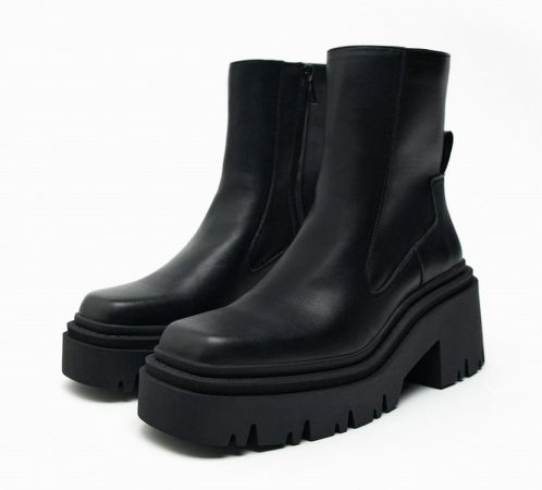 Como segunda opción (peor no por ello menos adecuada), te presentamos los siguientes botines con suela dentada tipo track. Con un acabado en punta cuadrada, tirador trasero y un cierre mediante cremallera en el lateral, puedes adquirirlas tanto en color negro como blanco crudo por un precio de 35,95€. Sus tallas van de la 35 a la 42 (REF.: 3102/210).